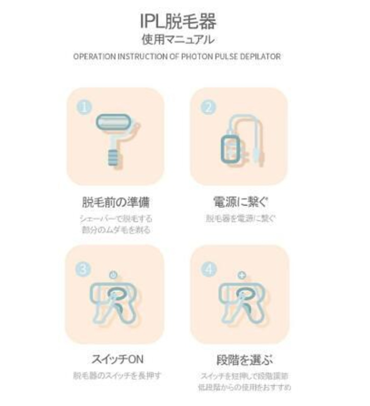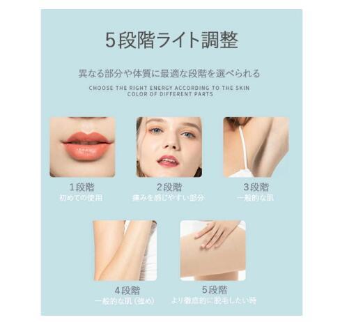 【脱毛使用範囲】顔にも使用でき、手足、脇、Vライン、口角周りと、ほぼ全身に使用可能です。※脚、腕、ワキ、ビキニライン、顔(頬骨より下の部分)に使用可能。この光脱毛器は体毛の色が白、グレー、金髪、赤毛の方には効果がありません。目の周りや、額には使用しないでください。医療機関でテスト済み※医療機器ではありません。