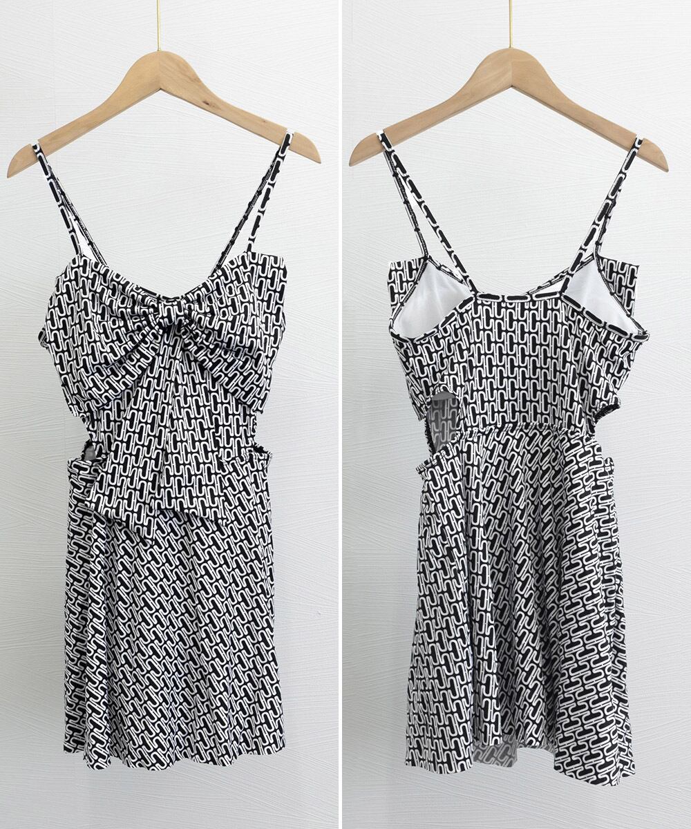 大人かわいい体型カバーとお洒落な肌チラ見せが特徴の総柄ワンピース水着