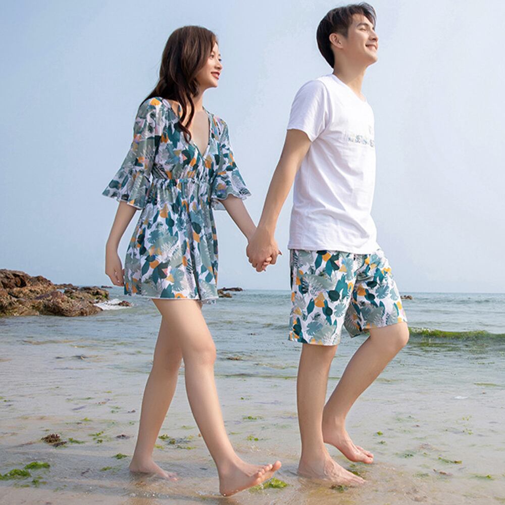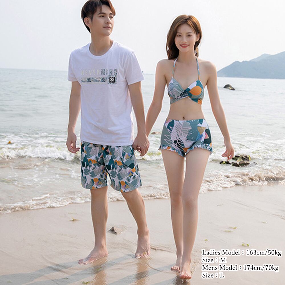 男性用の水着は女性用と同じく花柄がプリントされており、カップルでお揃いのコーディネートを楽しむことができます