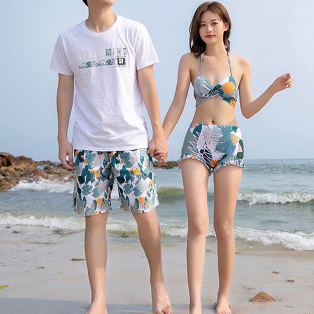 新婚旅行、リゾート地やビーチでのデートにぴったりの花柄ペア水着です