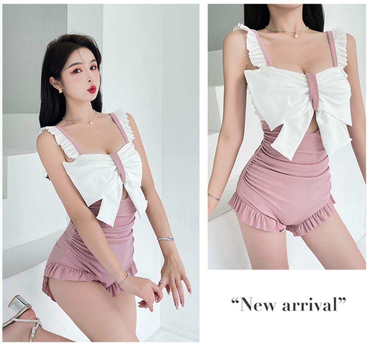 ・大人かわいいリボンとフリルMIXデザインのスイムウェア。
