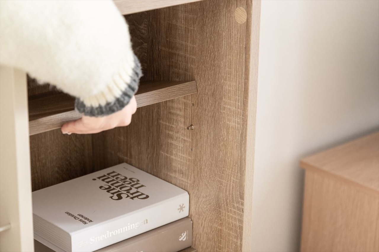 左右に動かすスライド棚で「隠す」と「見せる」が両立できる『Mysa(ミーサ)』スライド収納付き本棚ラック