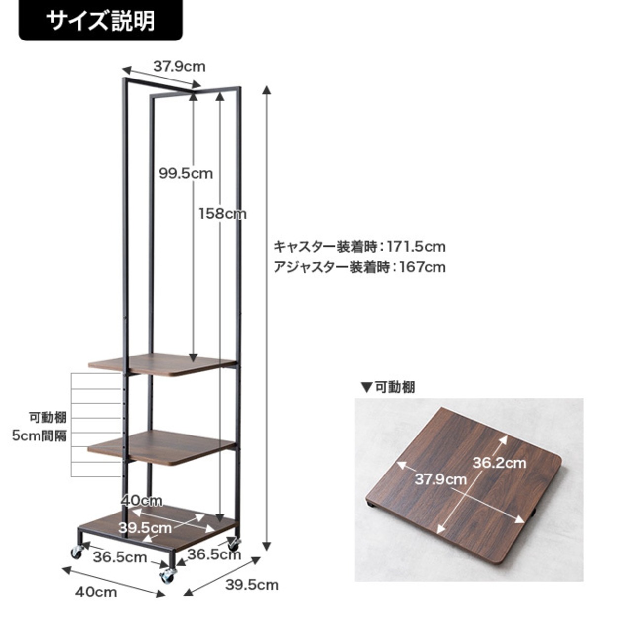 幅40cm×奥行39.5cm×高さ(キャスター装着時):171.5cm (アジャスター装着時):167cm