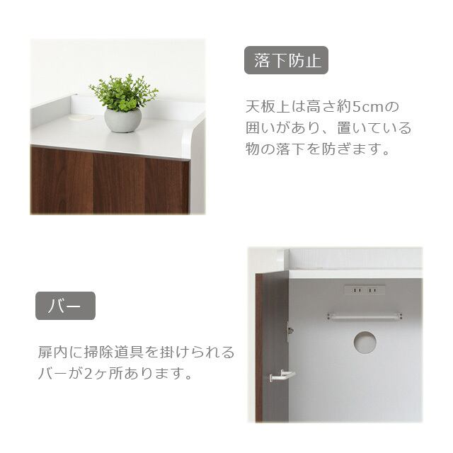 ●扉内に掃除道具を掛けられるバーが2ヶ所あります。