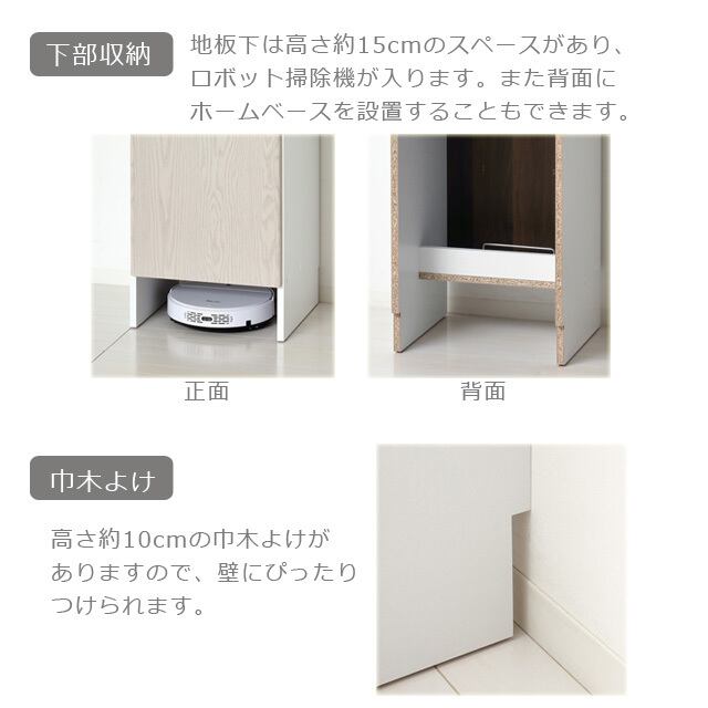 ●地板下は高さ約15cmのスペースがあり、ロボット掃除機が入ります。また背面にホームベースを設置することもできます。