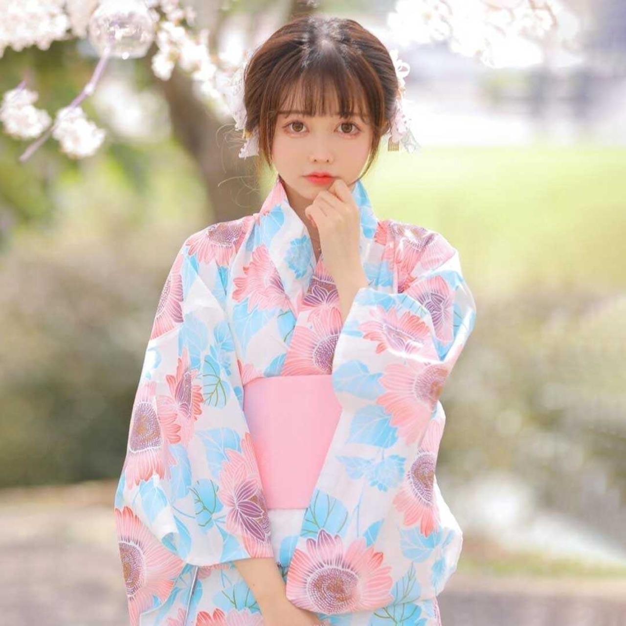 浴衣4点セット ピンクの向日葵 ひまわり 洗える 夏着物 フォーマル