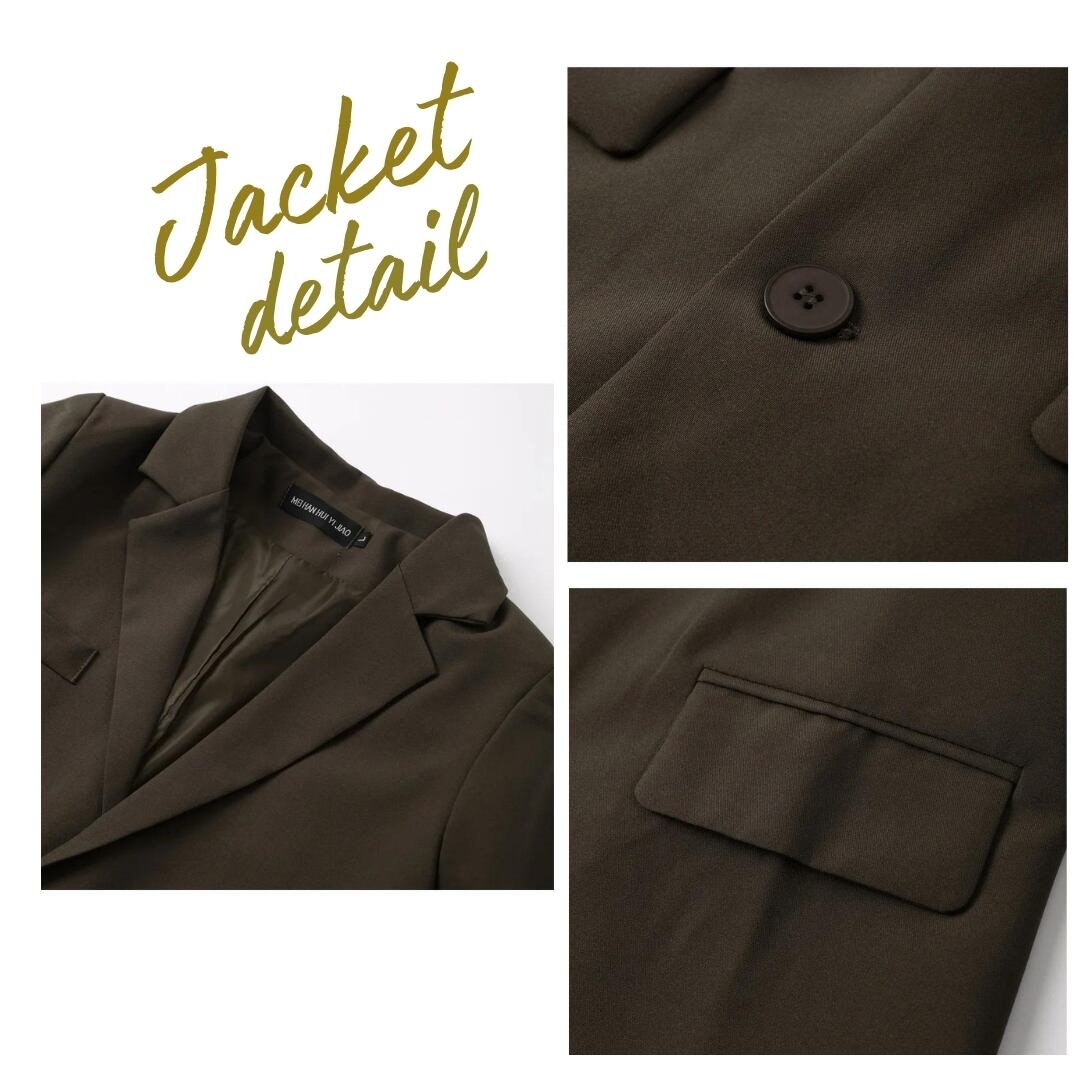 3連ボタンが付いているので、袖をまくってお洒落な着こなしもできます。フェイクポケットがこなれ感ある印象を持たせてくれます。ハイウエスト気味でピッタリウエストが脚長効果をアップ!