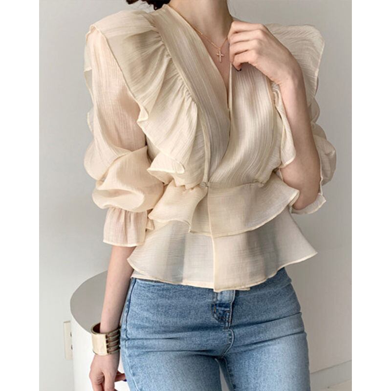 フレア シフォンブラウス Vネック レディース 透け感 20代 30代 40代
