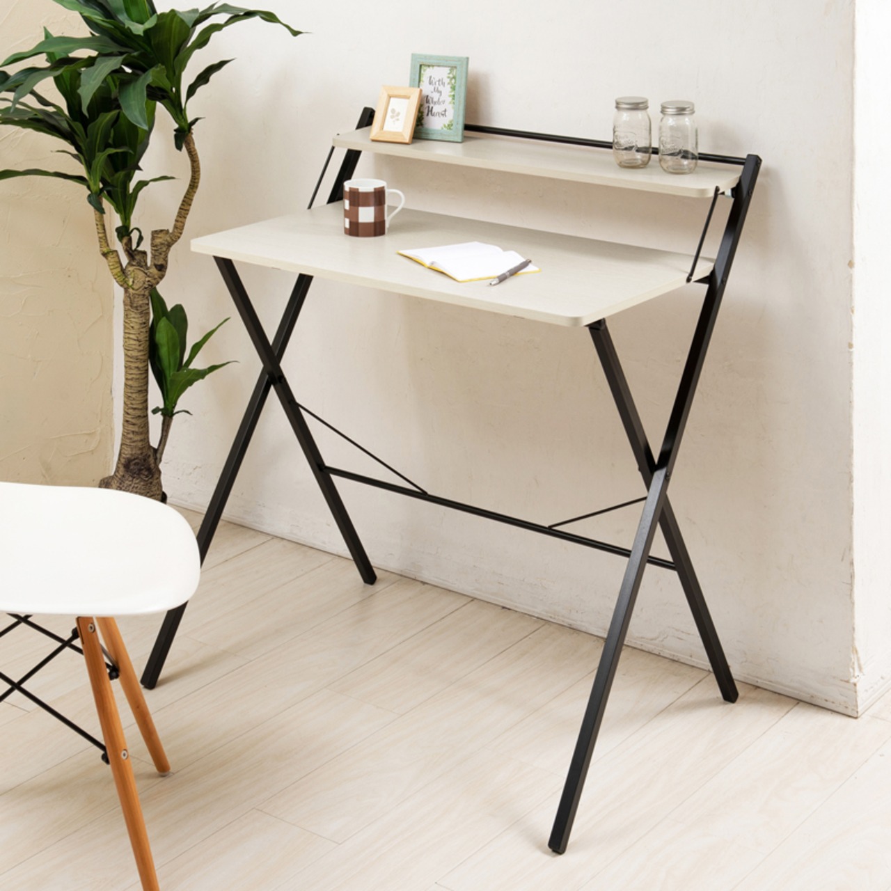 棚付折りたたみワークデスク(ハイタイプ) テーブル 机 木目 収納 テレワーク PCデスク
