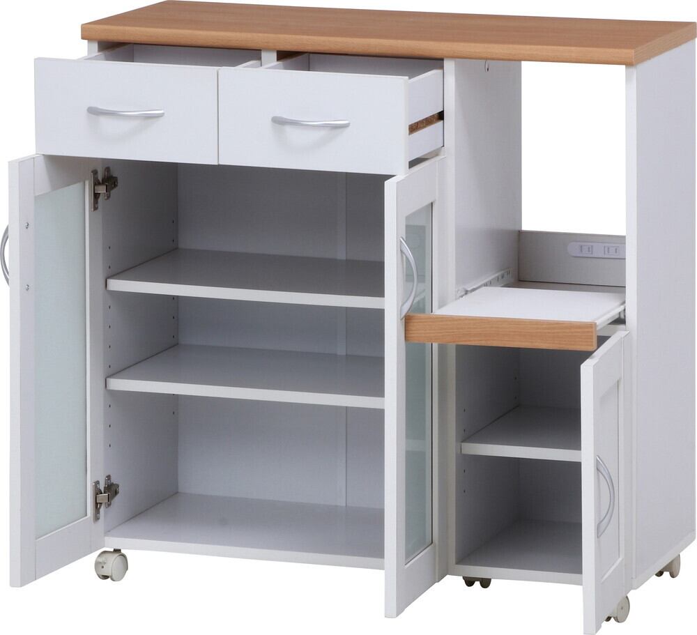 2つの戸棚に分かれていて、細やかな収納が可能。食器や缶詰、お菓子などスッキリ収納できます。