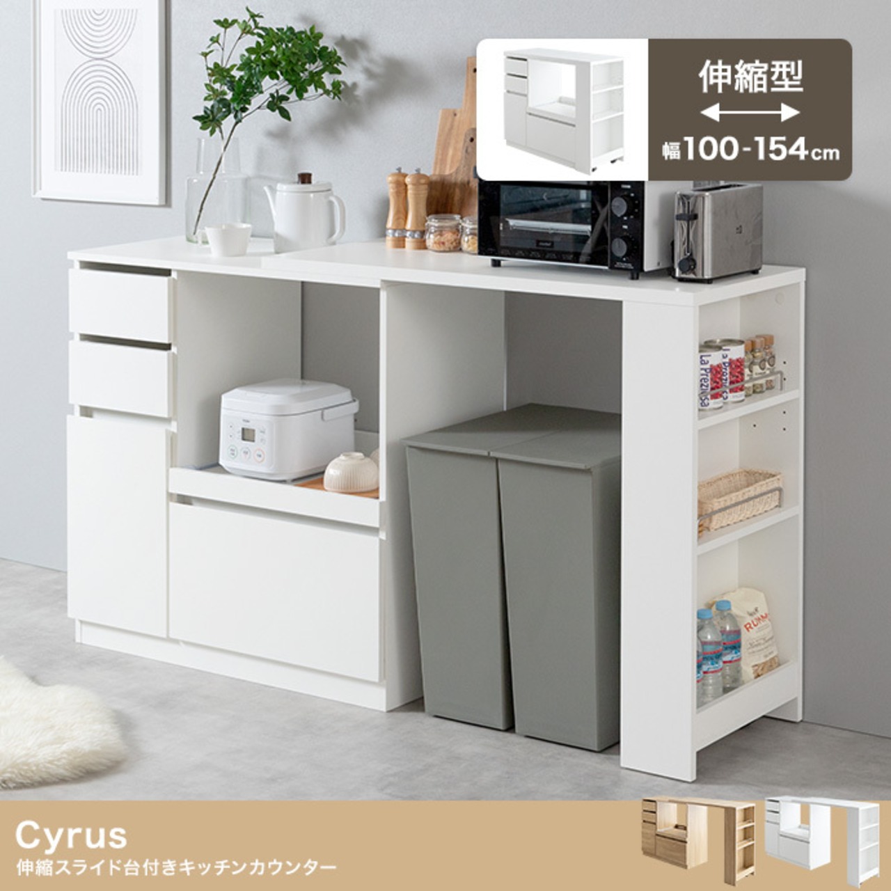 Cyrus 伸縮スライド台付きキッチンカウンター