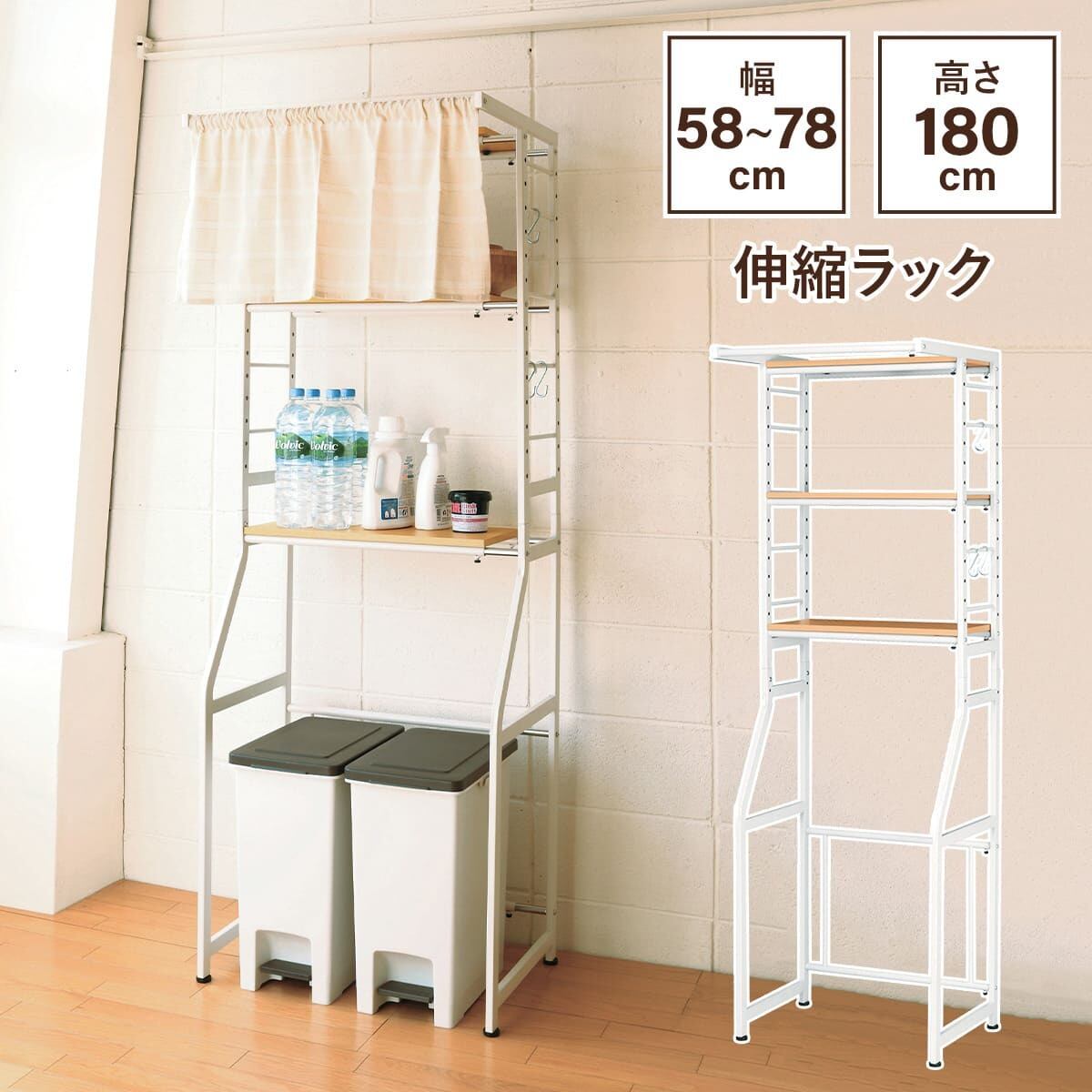 キッチンやランドリーの収納に便利な横幅が伸縮できるスチールラック。